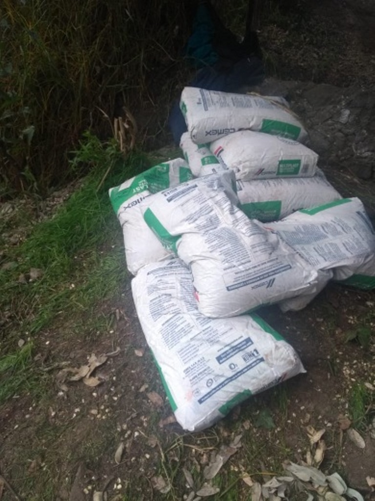 Por lo que, al realizar recorridos y patrullajes en la búsqueda de más indicios, algún tren varado, de los presuntos responsables del hurto y descartar otro acto ilícito, se ubicó metros adelante, ocho bultos de cemento.