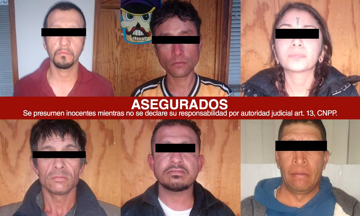 Por lo anterior, los imputados que responden a los nombres de Irma N., Humberto N., Manuel N., Federico N., Hugo N., y Agustín N., fueron asegurados por el delito de robo calificado y puestos a disposición del Agente del Ministerio Público para integrar la indagatoria correspondiente.
