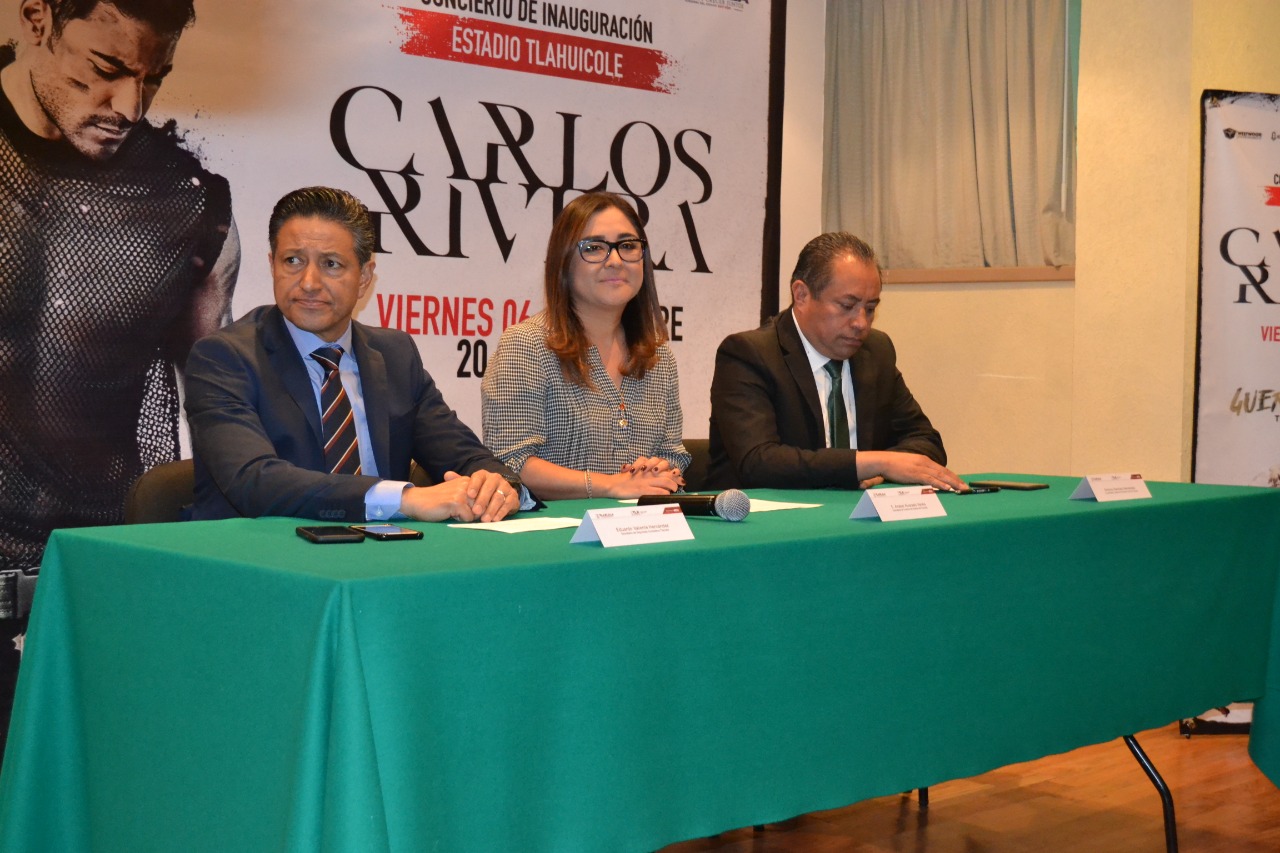 TLAXCALA, Tlax., 28 de noviembre de 2019.- Los boletos para el concierto de Carlos Rivera en la inauguración del estadio Tlahuicole se obsequiarán en las 10 taquillas del Recinto Ferial el 5 de diciembre a partir de las 9:00 horas y hasta agotar existencias.