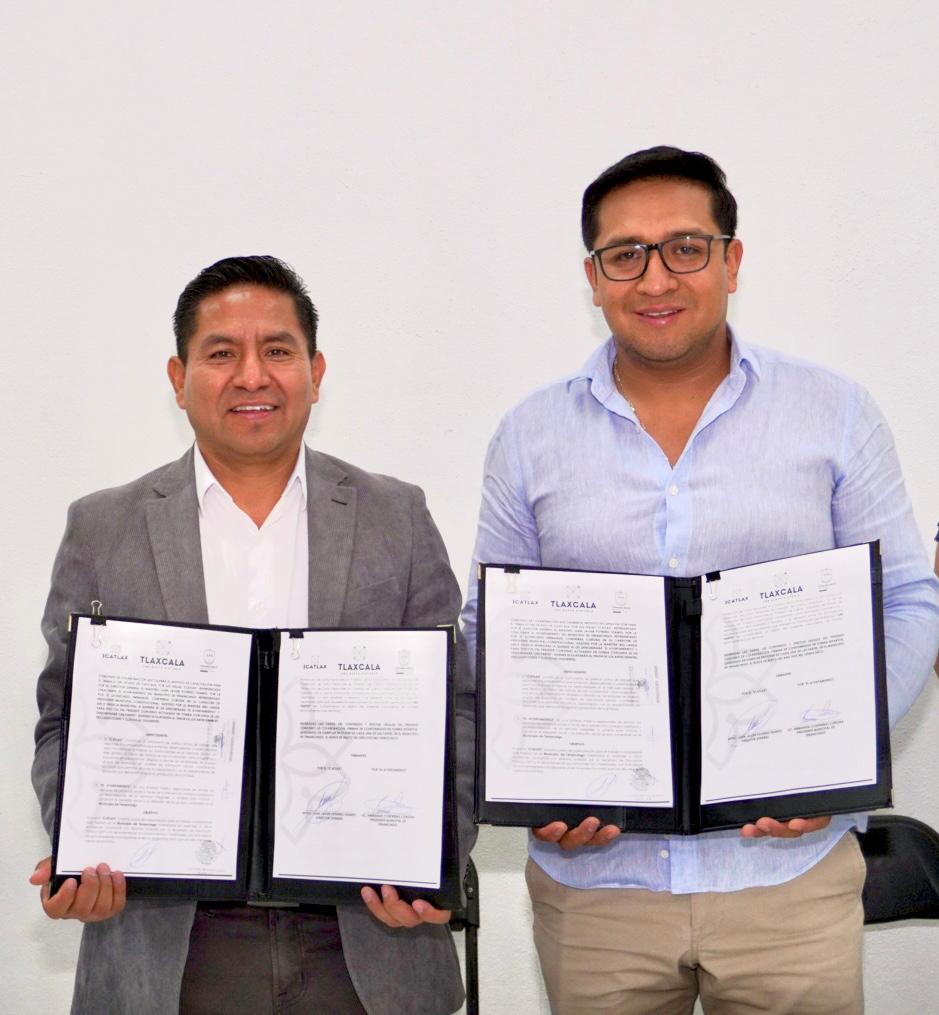 La firma del acuerdo tuvo lugar en las instalaciones del Sistema Municipal para el Desarrollo Integral de la Familia (SMDIF) de Tenancingo, con la participación del presidente municipal, Emmanuel Contreras Corona, y Juan Javier Potrero Tizamitl, director general de Icatlax, en presencia de autoridades locales y personal del instituto.