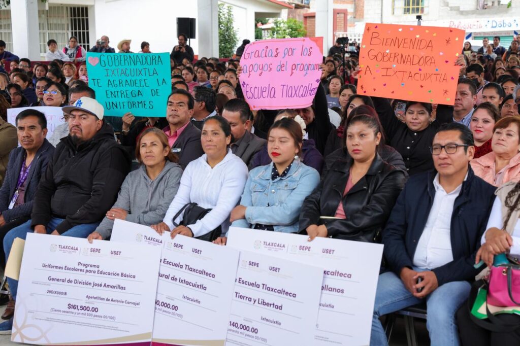 La gobernadora Lorena Cuéllar Cisneros entregó apoyos económicos correspondientes a los programas La Escuela Tlaxcalteca y Uniformes Escolares, en el municipio de Ixtacuixtla, con lo que reafirma su compromiso con la educación y el bienestar de la niñez y juventud del estado.