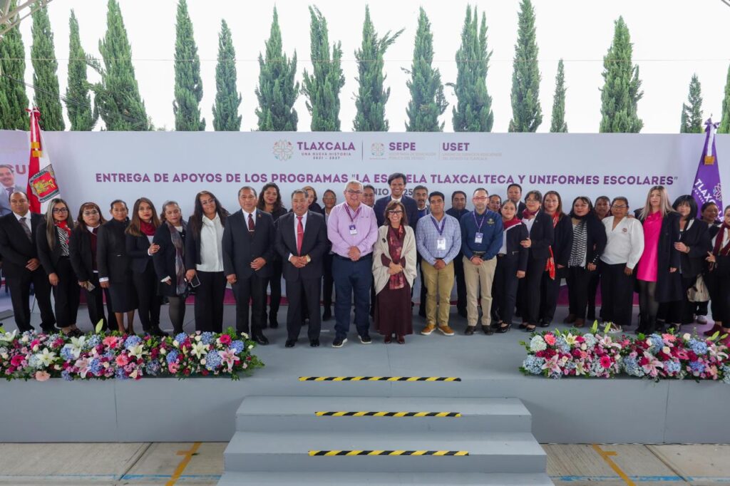 Durante el acto se llevó a cabo la entrega simbólica de apoyos económicos de los programas La Escuela Tlaxcalteca 2025 y Uniformes Escolares, beneficiando a más de 635 escuelas y 36 mil estudiantes de todos los niveles educativos en la entidad.