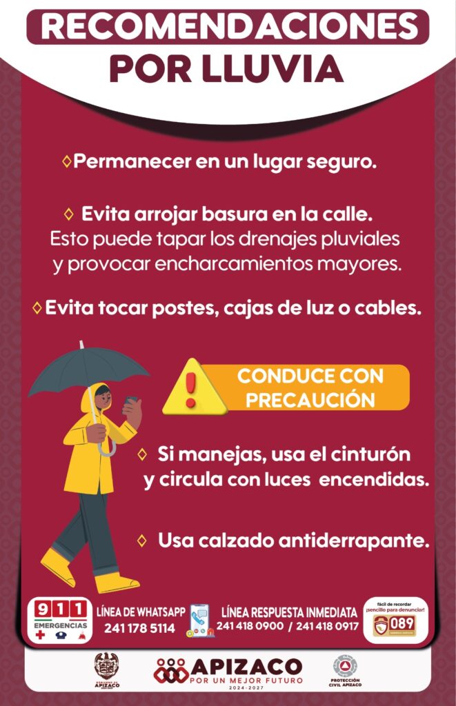 El H. Ayuntamiento de Apizaco, a través de Protección Civil Municipal, te comparte estas recomendaciones importantes: