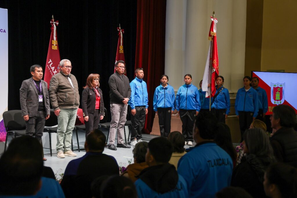 En el acto también estuvieron el director del Instituto del Deporte del Estado de Tlaxcala (IDET), Daniel Moncayo Cervantes, y el alumno representante de la delegación tlaxcalteca, Miguel Ángel Pérez Cervantes, además de docentes, madres, padres de familia y autoridades educativas.