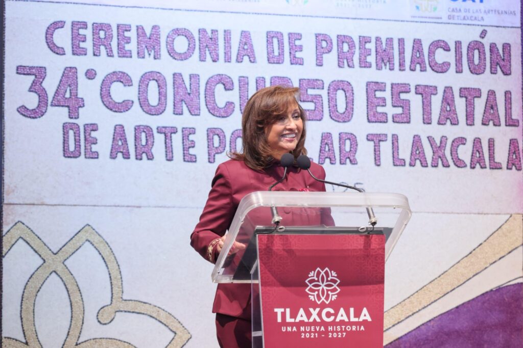 La gobernadora Lorena Cuéllar Cisneros presidió la ceremonia de premiación del 34° Concurso Estatal de Arte Popular Tlaxcala 2025, en el marco del Día del Artesano, donde reconoció la labor de las y los artesanos tlaxcaltecas para preservar la cultura, historia y arte de la entidad.