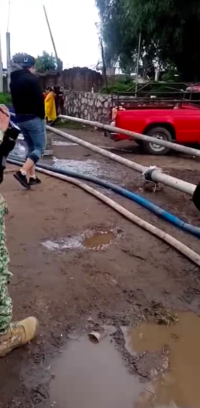 Personal de bomberos perteneciente a la Secretaria de Seguridad Ciudadana (SSC) así como personal del Ejército Mexicano y trabajadores del Municipio así como Protección Civil del mismo se encuentran en estos momentos sacando el agua de los terrenos donde se encuentra está mancha poblacional con tubos , mangueras y bombas de agua para evitar mayores afectaciones y en apoyo a la población.