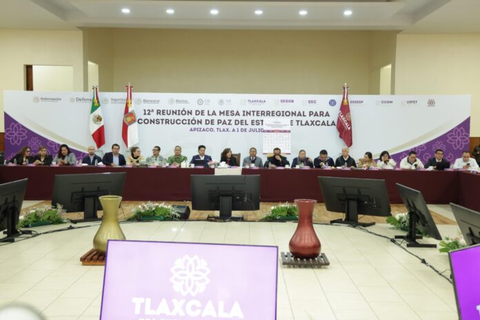 Durante la 12° reunión de la Mesa Interregional para la Construcción de Paz del estado, el Gabinete de Seguridad, presidentas y presidentes municipales firmaron la actualización del Protocolo de Actuación para casos de Linchamiento en Tlaxcala; además, abordaron temas para la atención a mujeres y grupos vulnerables; el plan de acción para la acción, prevención, atención y seguimiento de niñas adolescentes madres embarazadas y acciones colectivas en cuanto a medio ambiente.