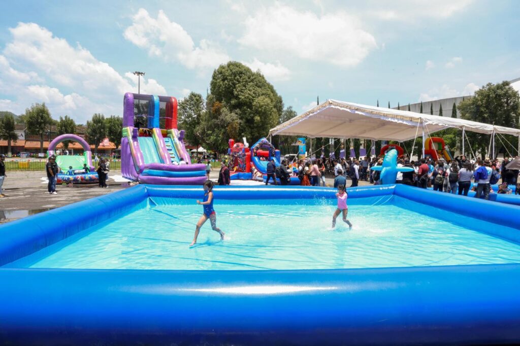 Detalló que se encuentran instaladas albercas, inflables, pinta caritas, actividades artísticas, espectáculo de payasos y áreas de juego, todo con acceso gratuito y es el tercer año consecutivo que se lleva a cabo.