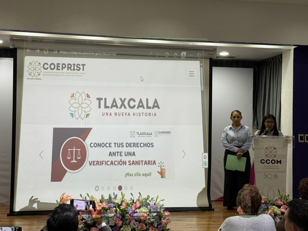 La titular de la Comisión Estatal para la Protección contra Riesgos Sanitarios de Tlaxcala (Coeprist), Jazmín Jiménez Gutiérrez, presentó ante representantes de cámaras de comercio del estado el nuevo sitio web del organismo, una herramienta que busca acercar información clara y confiable a la ciudadanía, así como fortalecer la transparencia en sus procesos.