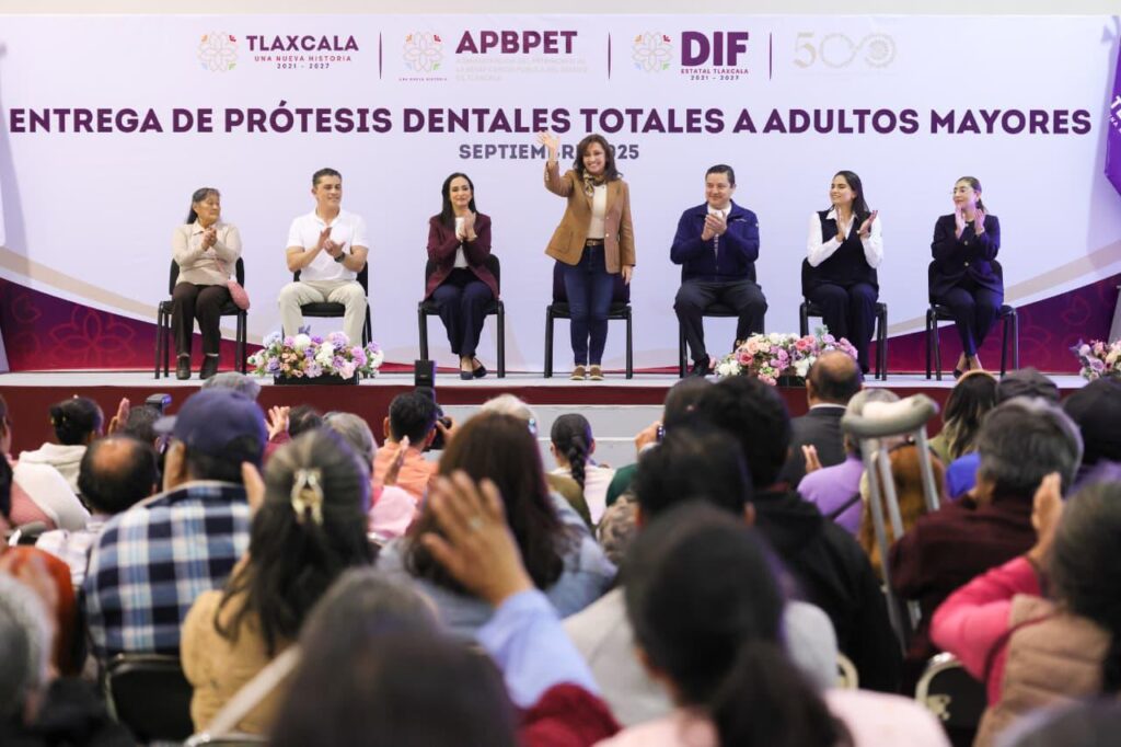 Con el compromiso de mejorar la salud y fortalecer la confianza y autoestima de las personas mayores en la entidad, la gobernadora Lorena Cuéllar Cisneros encabezó la entrega de 330 prótesis dentales totales a beneficiarias y beneficiarios de los 60 municipios de Tlaxcala.