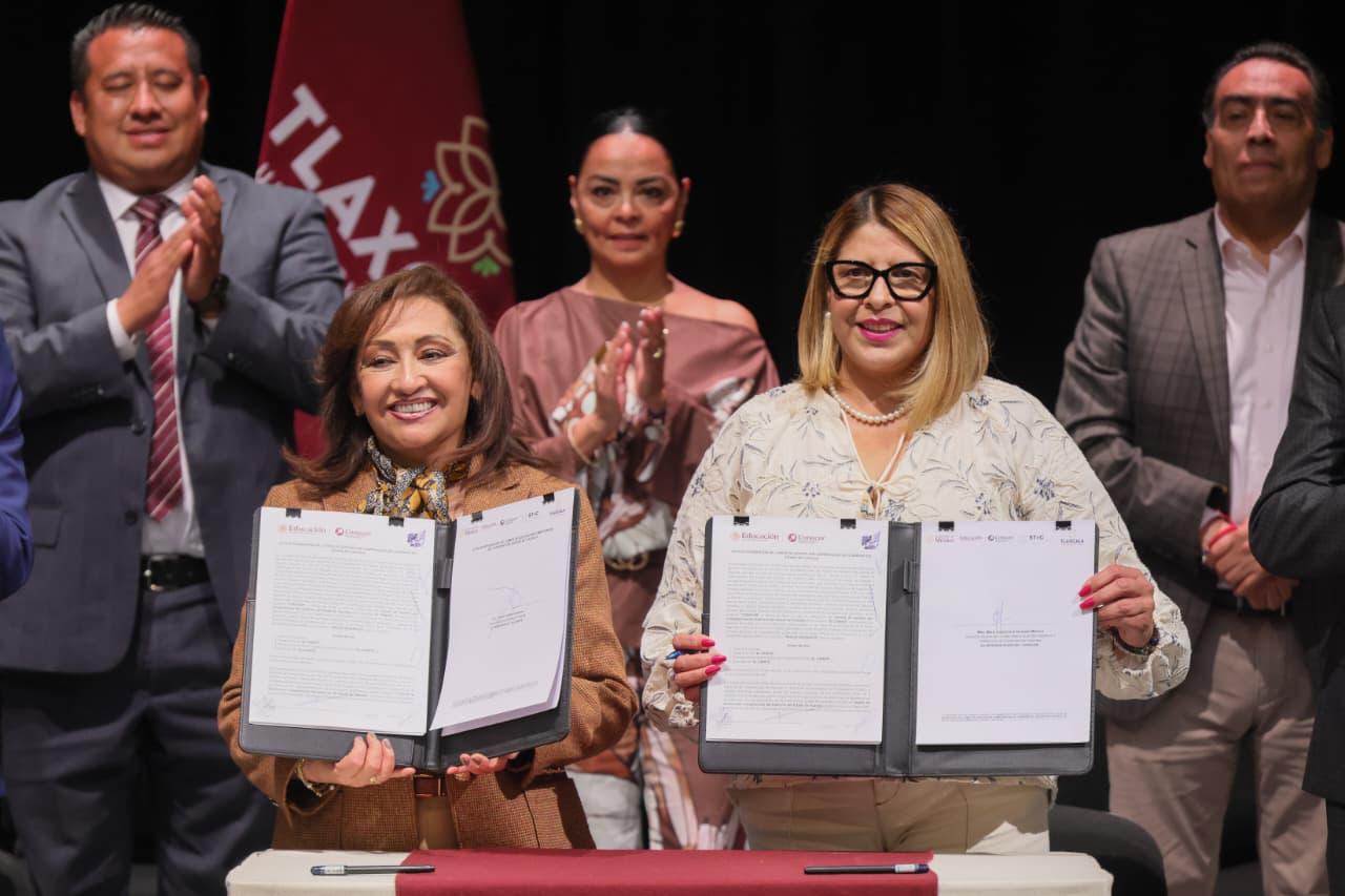 La gobernadora Lorena Cuéllar Cisneros y la directora general del Consejo Nacional de Normalización y Certificación de Competencias Laborales del Gobierno de México (Conocer), Guillermina Alvarado Moreno, encabezaron la firma de instalación del Comité de Gestión por Competencias de Tlaxcala, organismo que fortalecerá la capacitación y certificación de trabajadores, estudiantes y sectores productivos de la entidad, con el propósito de mejorar las condiciones de vida de las familias tlaxcaltecas.
