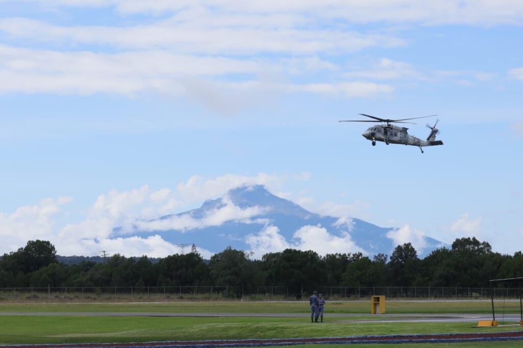 Destacó que alrededor de 100 elementos realizan prácticas diarias en Tlaxcala, con dos pilotos por aeronave, además de la participación de 10 mujeres piloto aviador integradas en distintas tripulaciones.