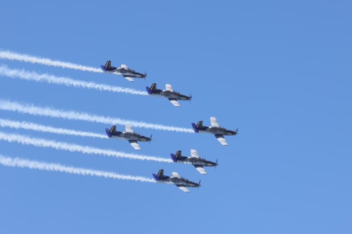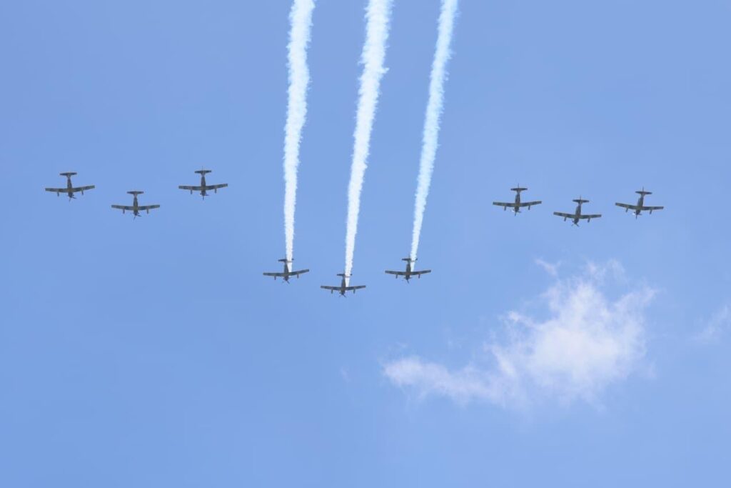 Los cielos tlaxcaltecas se han convertido en el espacio de ensayo para el desfile cívico-militar del próximo 16 de septiembre en la Ciudad de México, donde más de un centenar de aeronaves de la Fuerza Aérea Mexicana, la Marina y la Guardia Nacional mostrarán su capacidad y disciplina; las prácticas se realizan en la Estación Aérea Militar Núm. 9, ubicada en Atlangatepec.