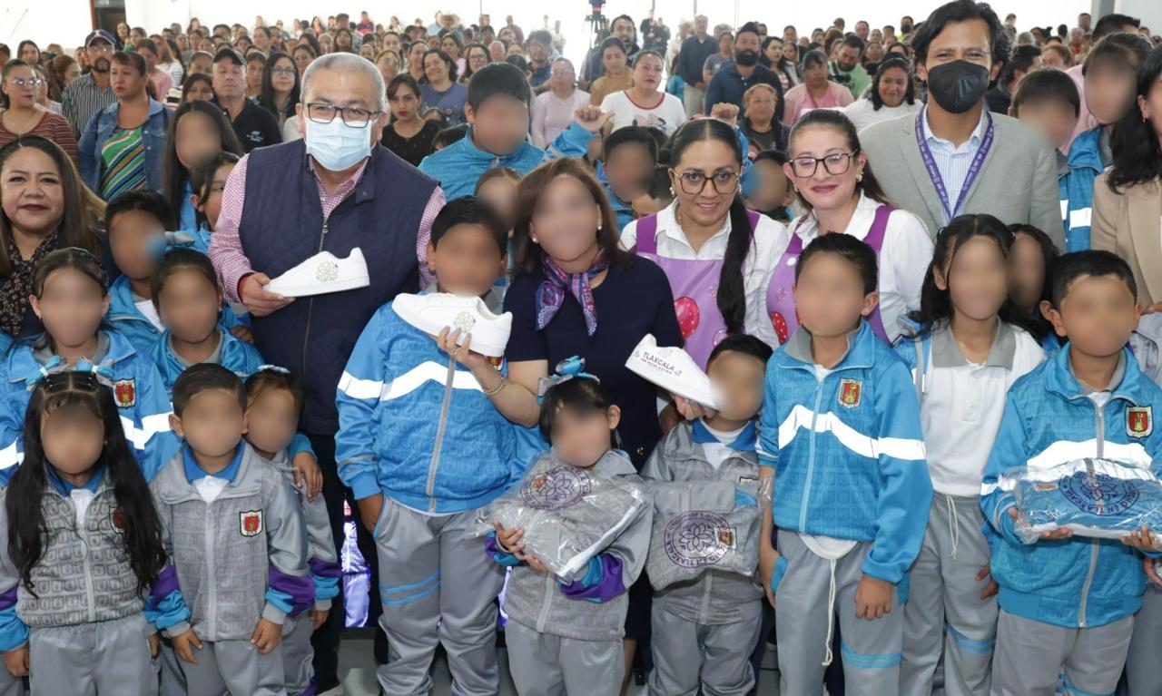 La mandataria estatal también dio a conocer que, por primera vez, se incorporó la entrega de 2 mil pares de tenis para estudiantes de educación especial y algunos preescolares unitarios, elaborados con tela tradicional tlaxcalteca, con una inversión de un millón de pesos.