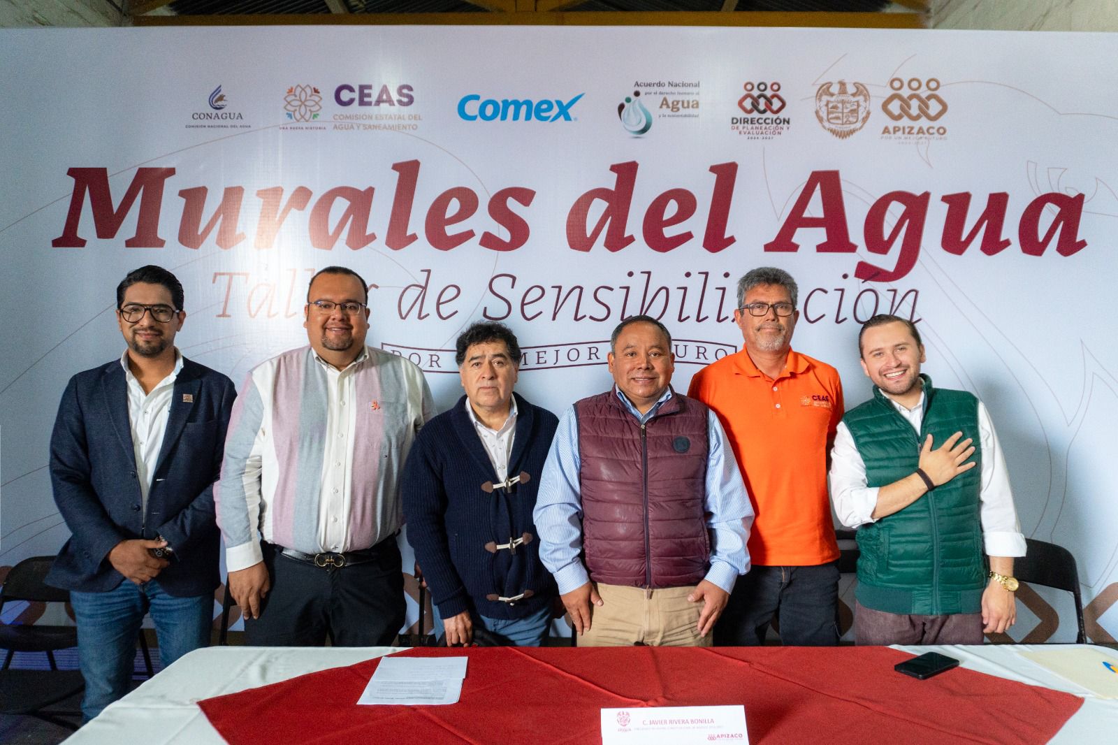 En el evento estuvieron presentes Marco Antonio Sánchez Pulido, director de Agua Potable de la Comisión Estatal de Agua y Saneamiento; José Héctor Osorio Chumacero, subdirector local de Conagua; Ignacio Muñoz Guevara, director de CAPAMA; Edgar Arturo Martínez Bermúdez, director de Planeación y Evaluación del municipio; el secretario del ayuntamiento, Juan Pablo Morales Rico; así como muralistas y miembros de la administración municipal.