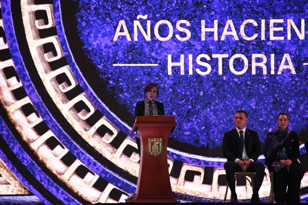 La gobernadora Lorena Cuéllar Cisneros, acompañada del presidente municipal Alfonso Sánchez García y de la secretaria de Turismo, Josefina Rodríguez Zamora, encabezó esta ceremonia que marcó el inicio de las actividades conmemorativas.