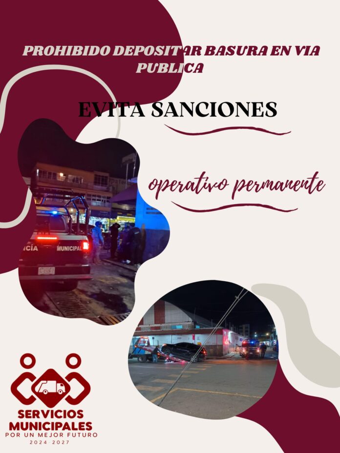 La Dirección de Servicios Municipales, en coordinación con Direccion de Seguridad Pública Municipal, mantiene firmes las acciones para prevenir y sancionar a quienes tiran basura en la vía pública.