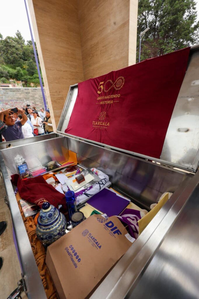 Destacó que su propósito es dejar un mensaje de amor, orgullo y esperanza para las y los tlaxcaltecas del año 2075, quienes encontrarán en su contenido el testimonio de un pueblo que honra su historia y mira con confianza hacia el porvenir.
