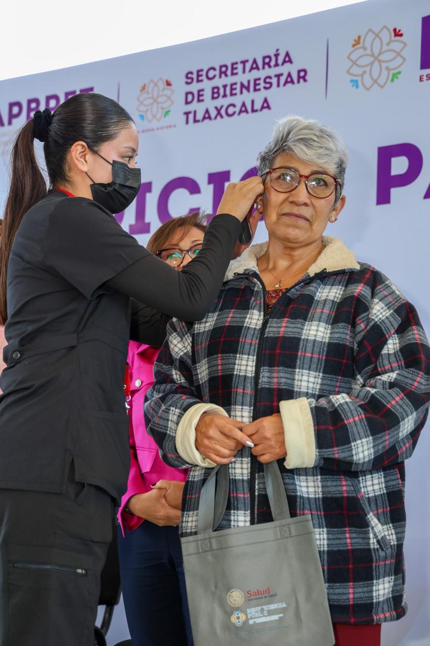Acompañada de la presidenta honorífica del Sistema Estatal para el Desarrollo Integral de la Familia (Sedif), Mariana Espinosa de los Monteros Cuéllar, y de la presidenta honorífica del Comité Consultivo de Bienestar y Desarrollo Social del Estado de Tlaxcala, María Fernanda Espinosa de los Monteros Cuéllar, la mandataria destacó que su compromiso con las personas con discapacidad se fortaleció desde su formación profesional, al constatar cómo un aparato auditivo puede transformar una vida.