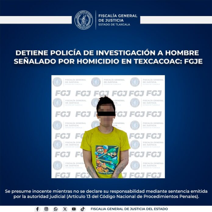Como resultado de los trabajos de inteligencia realizados por la Policía de Investigación, la Fiscalía General de Justicia del Estado (FGJE) aprehendió a Juan Alberto N., alias “Samarripa”, por el delito de homicidio calificado, ocurrido en Chiautempan.