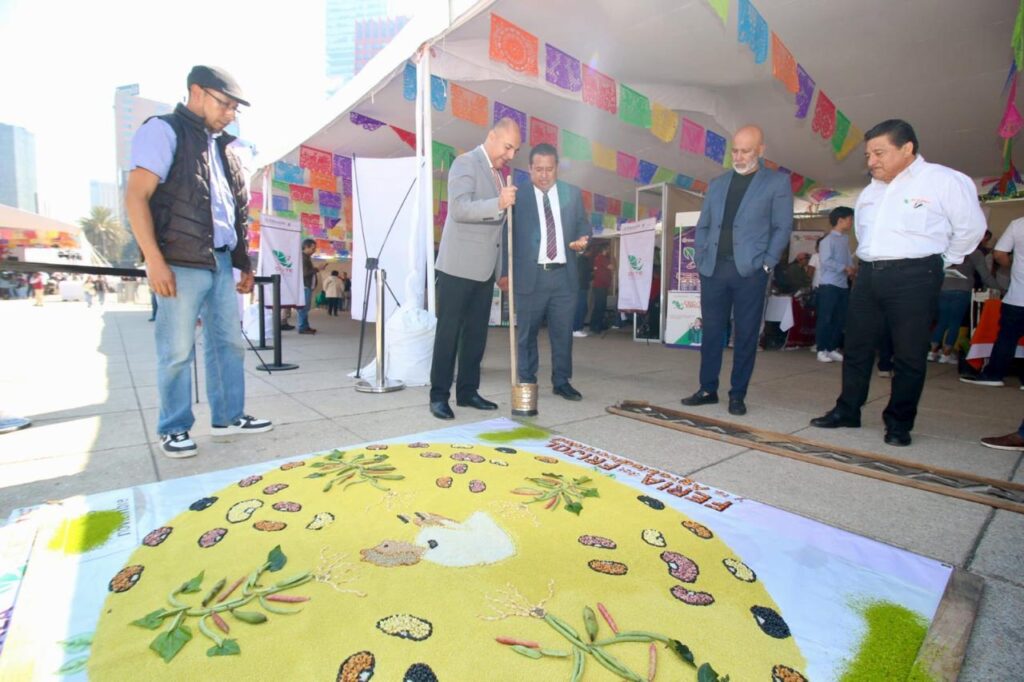 Además de la muestra gastronómica, el artesano tlaxcalteca Ricardo Flores Téllez presentó un tapete de frijol y aserrín de colores, pieza que simbolizó la diversidad cultural y agrícola de Tlaxcala.