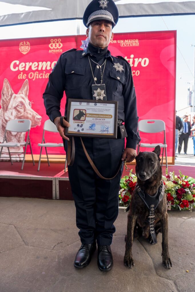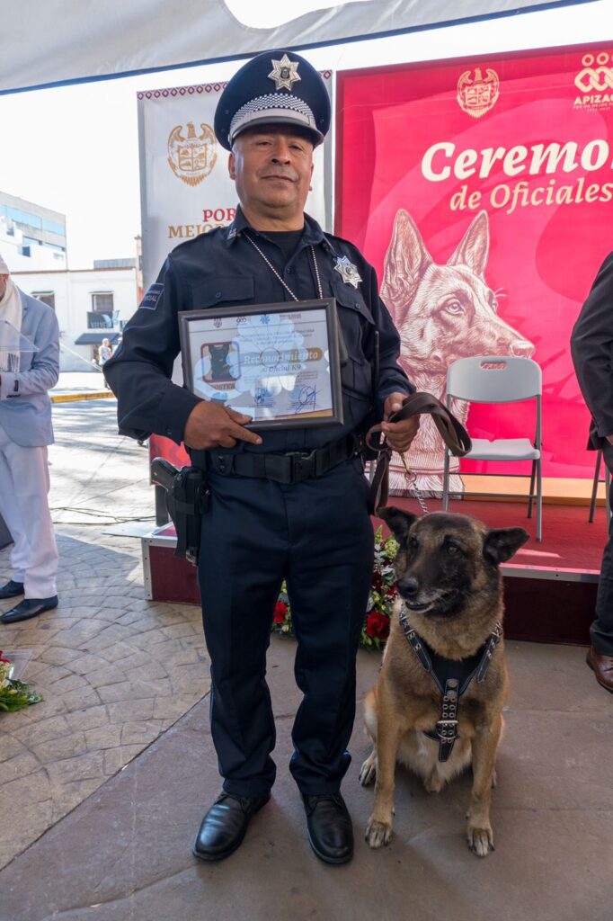 RECONOCE SEGURIDAD PÚBLICA DE APIZACO A OFICIALES CANINOS TRAS 9 AÑOS DE SERVICIO.