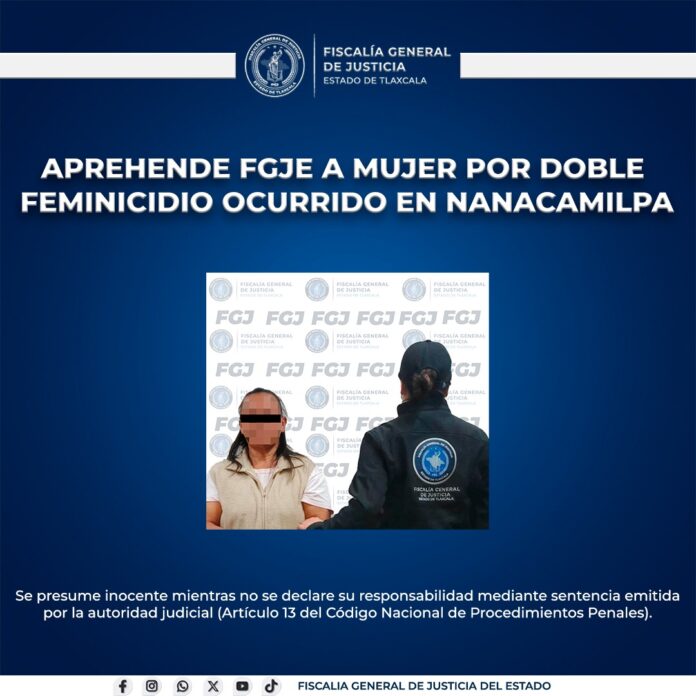 Derivado de los trabajos de inteligencia realizados por la Policía de Investigación, la Fiscalía General de Justicia del Estado (FGJE) logró la aprehensión de Carmela N., por su presunta responsabilidad en un doble feminicidio ocurrido en el municipio de Nanacamilpa.