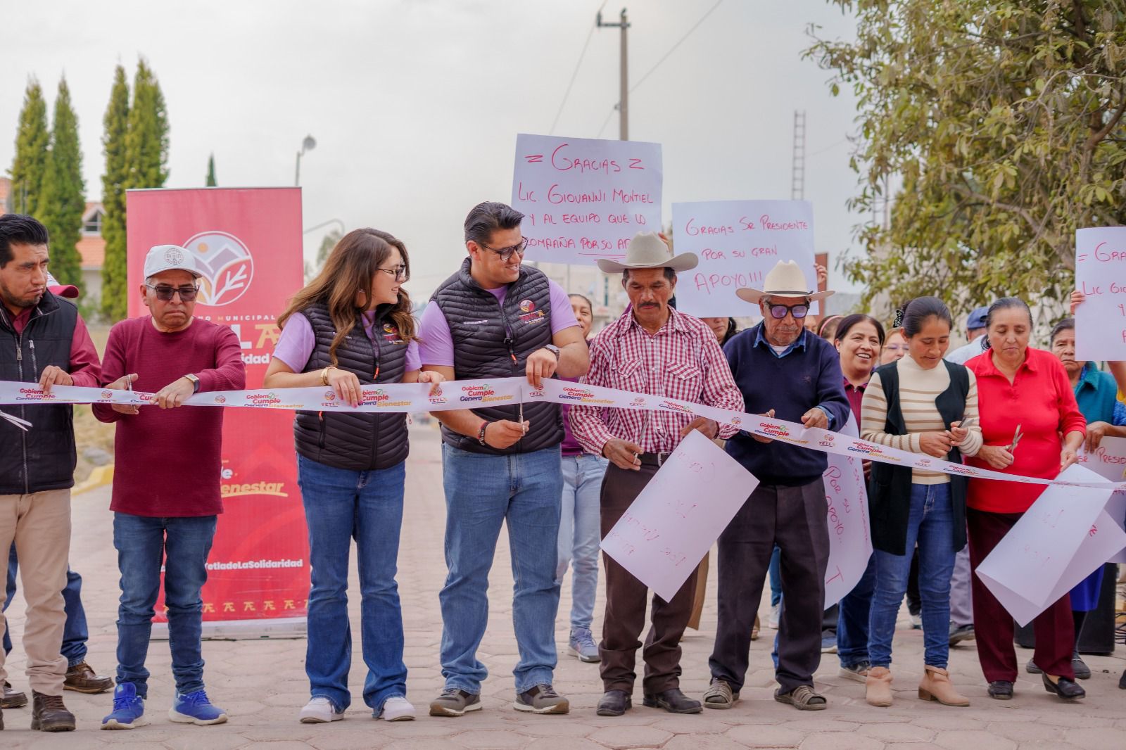 Giovani Montiel realizó entrega de obra en la calle Tabasco, en San Bartolomé Matlalohcan