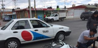 Accidente entre taxista de Apizaco y motociclista frente al ITA